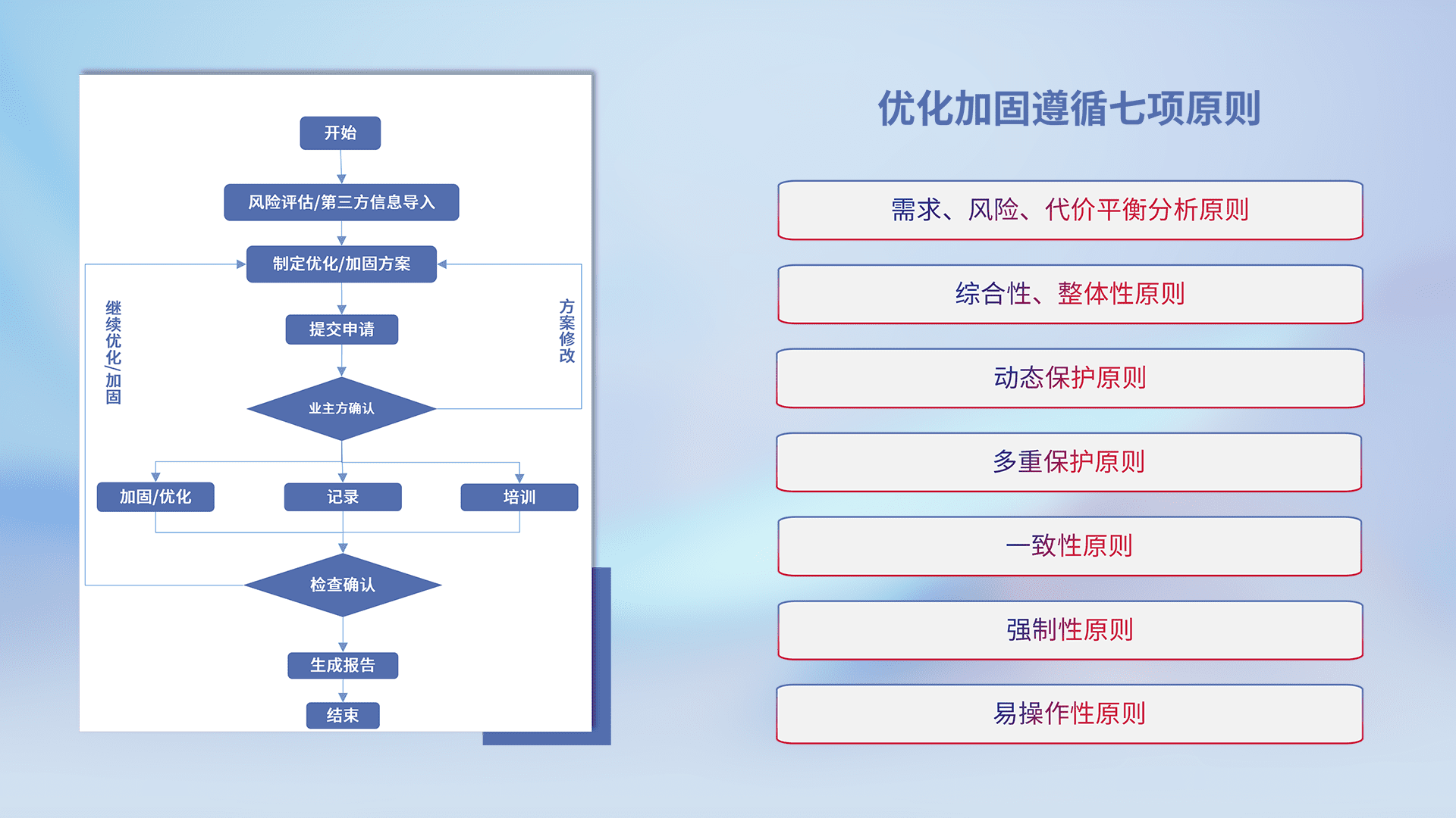 最大程度利用现有资产,,,对评估发现的问题进行封堵与整改,,,,防止漏洞被利用,,,,提升整体网络安全性,,,,为客户带来高标准的优化加固服务。。