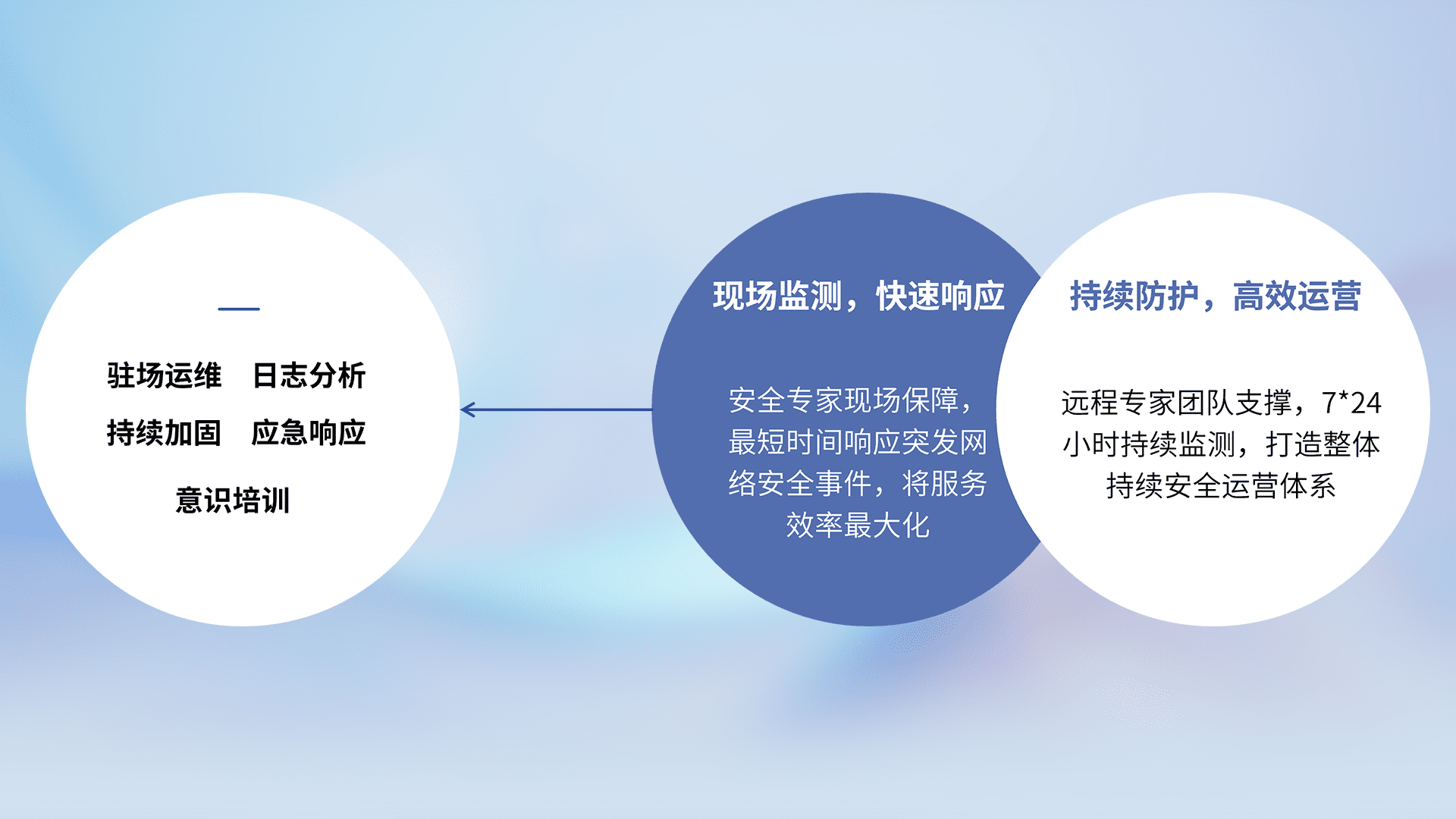 7X24小时持续监测安全事件,保持安全策略有效性,降低资产脆弱性风险,,,精准拦截黑客攻击,,,减少被黑客利用的机会,,,第一时间遏制,,降低损失。。。。